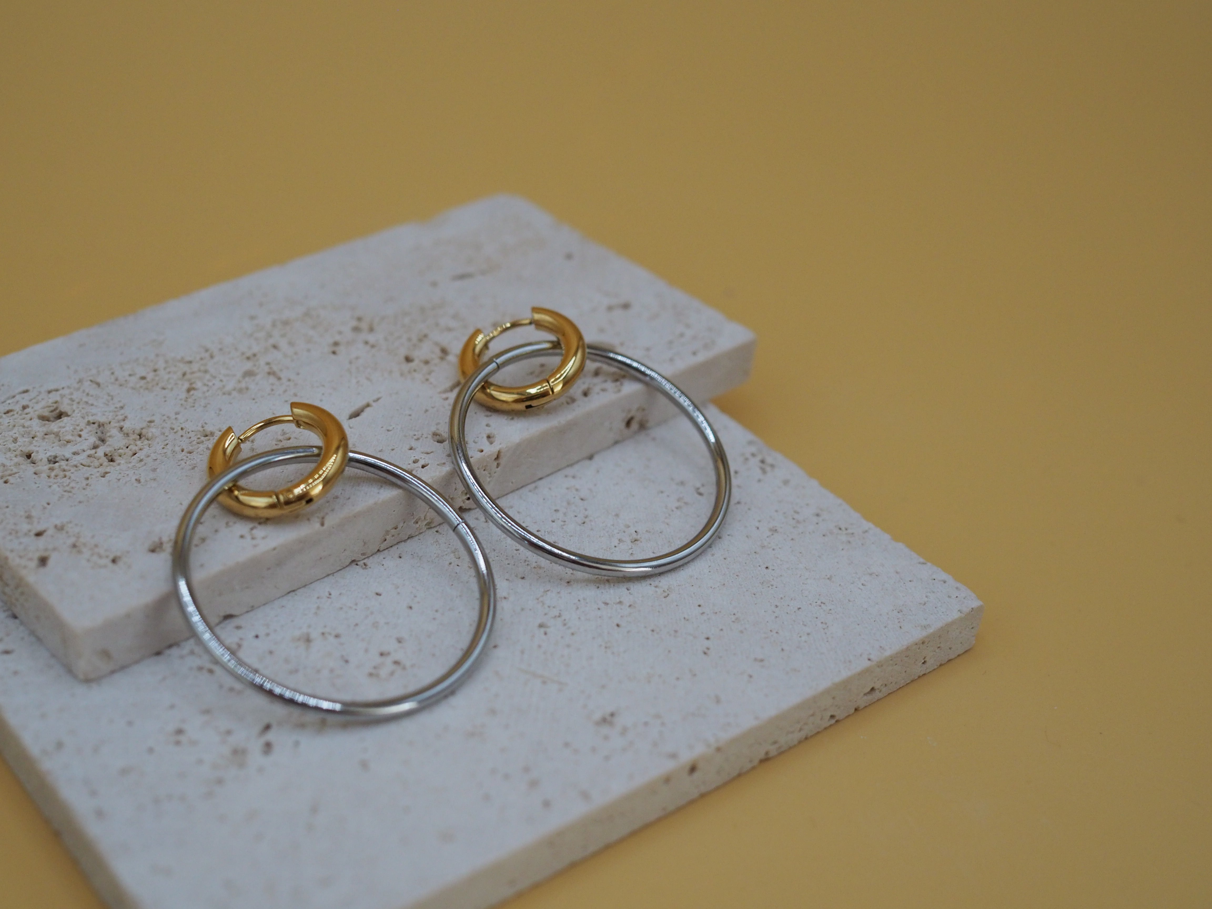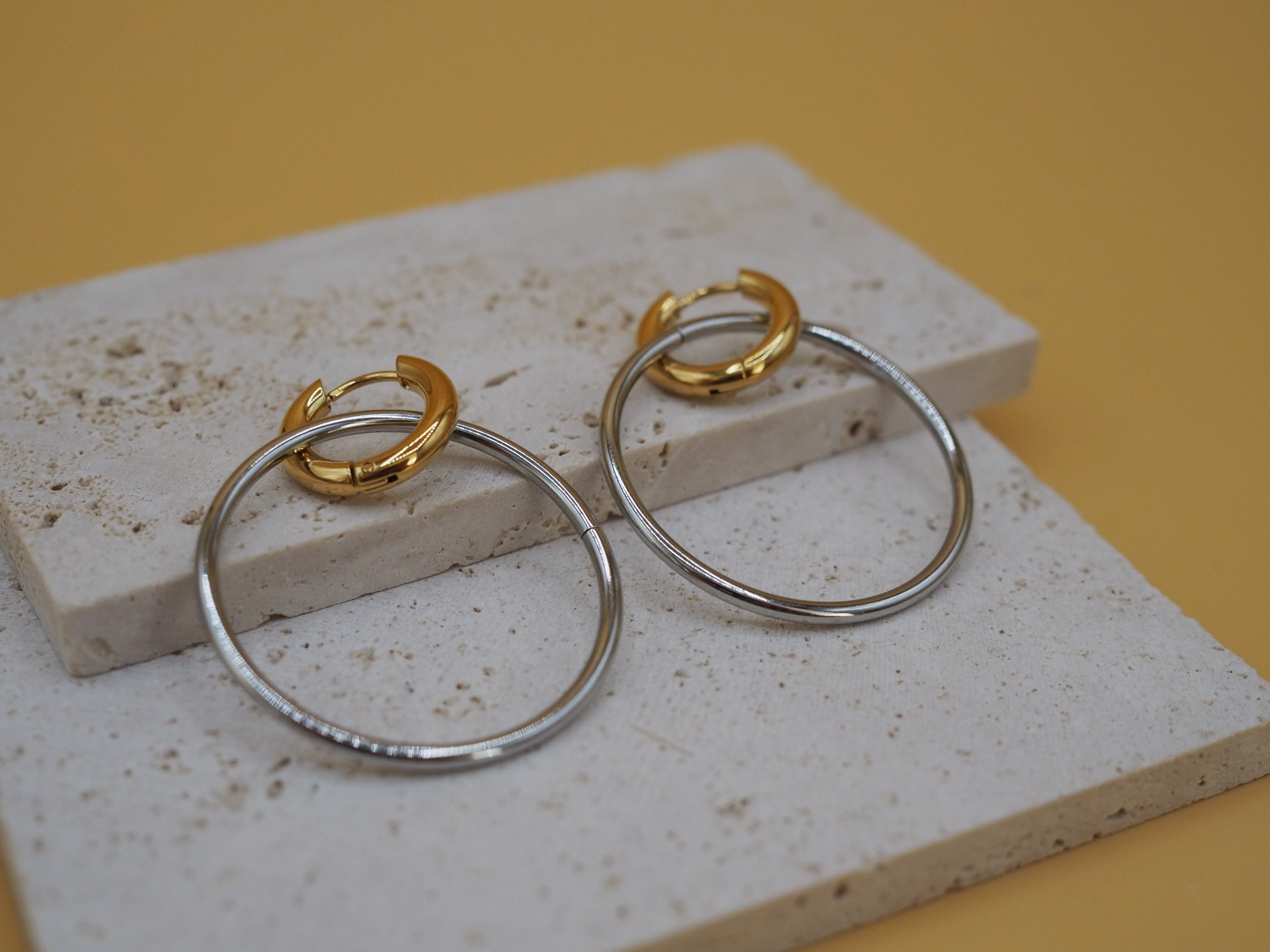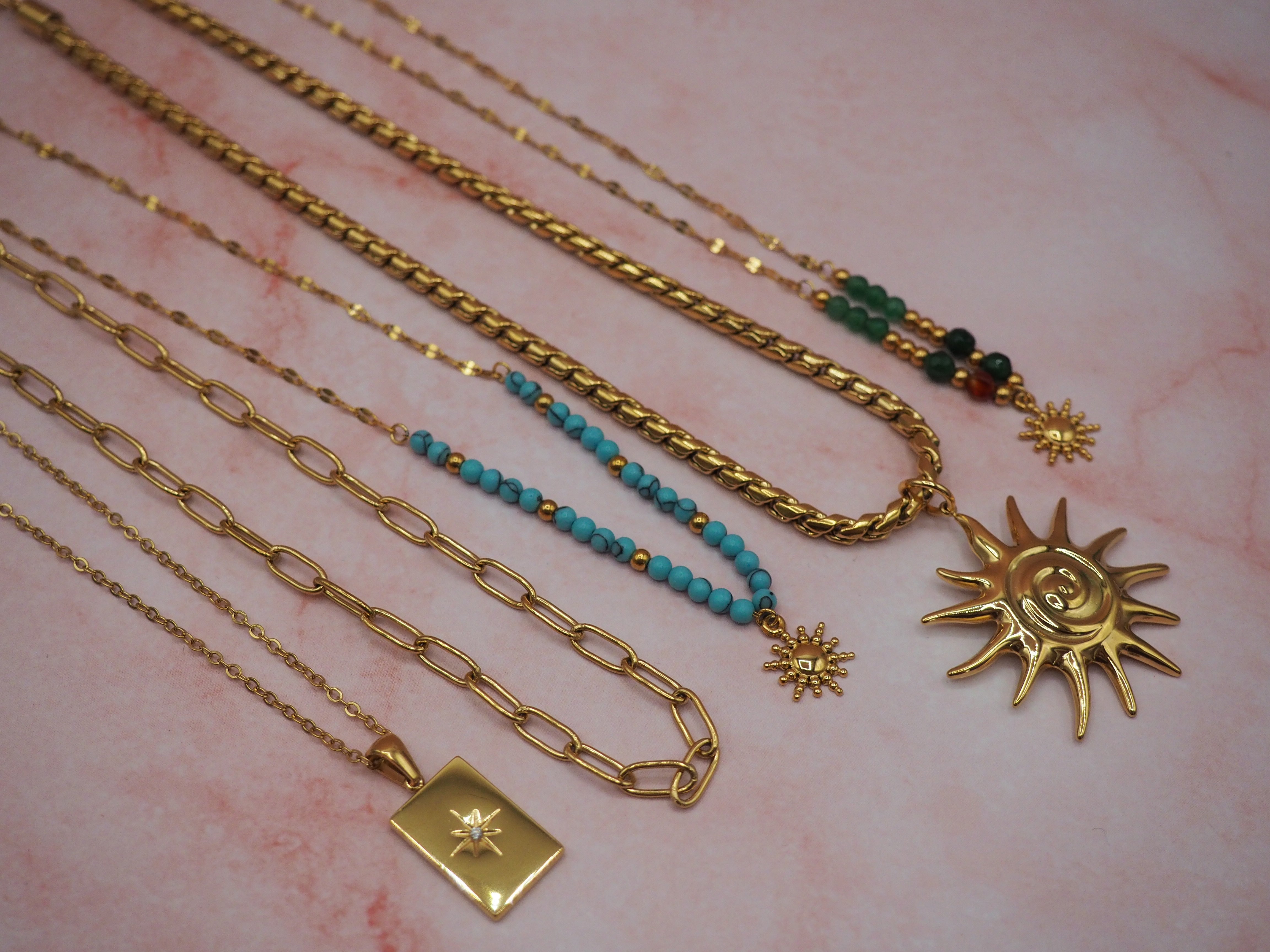 Onze collectie bestaat uit hoogwaardig roestvrij staal met een duurzame 18K vergulde PVD-laag. Zo blijven jouw sieraden: