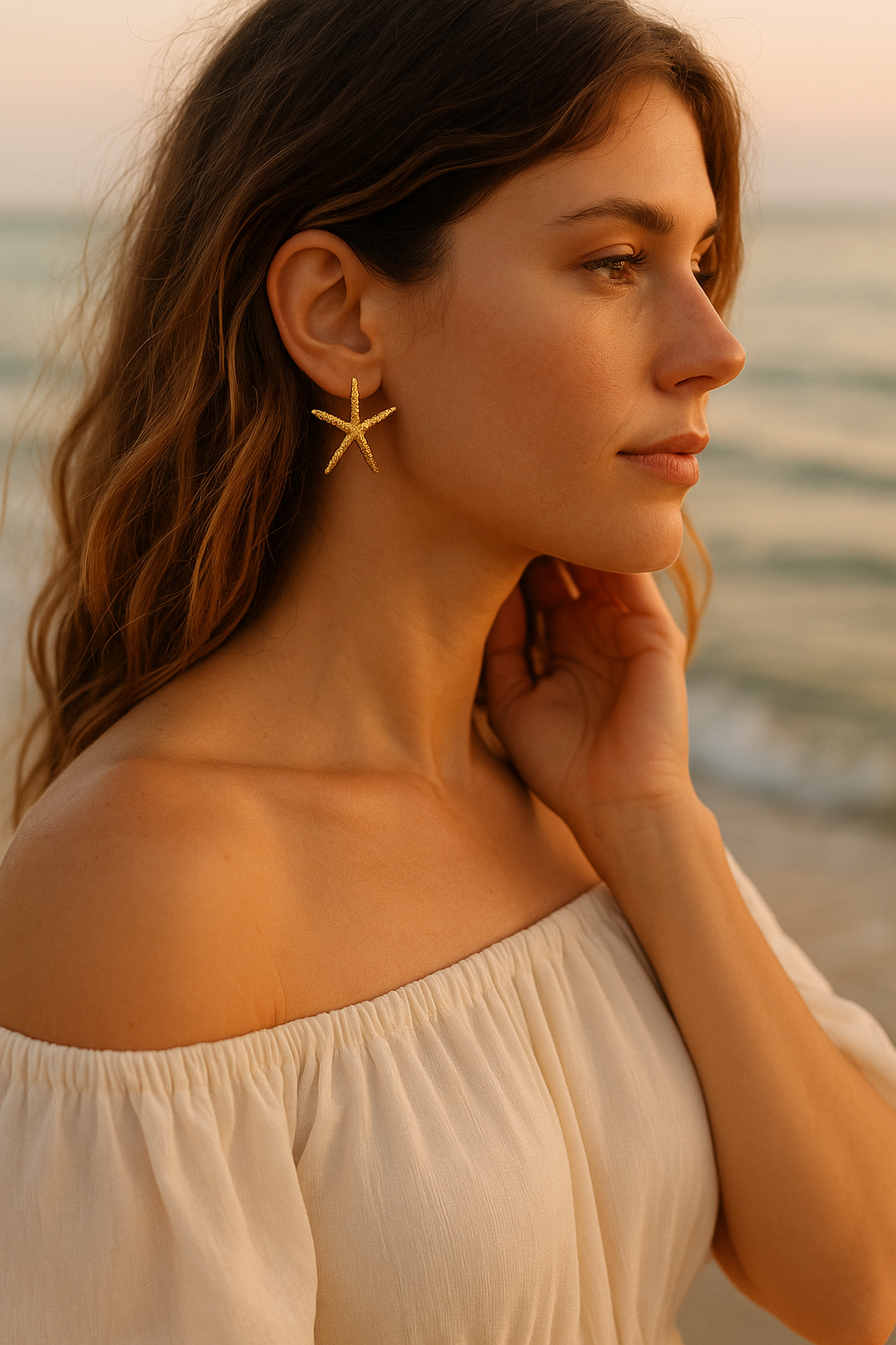 AMBER – 18K vergulde statement oorbellen voor vrouwen | Gouden zeesterren | Zomerse eyecatcher