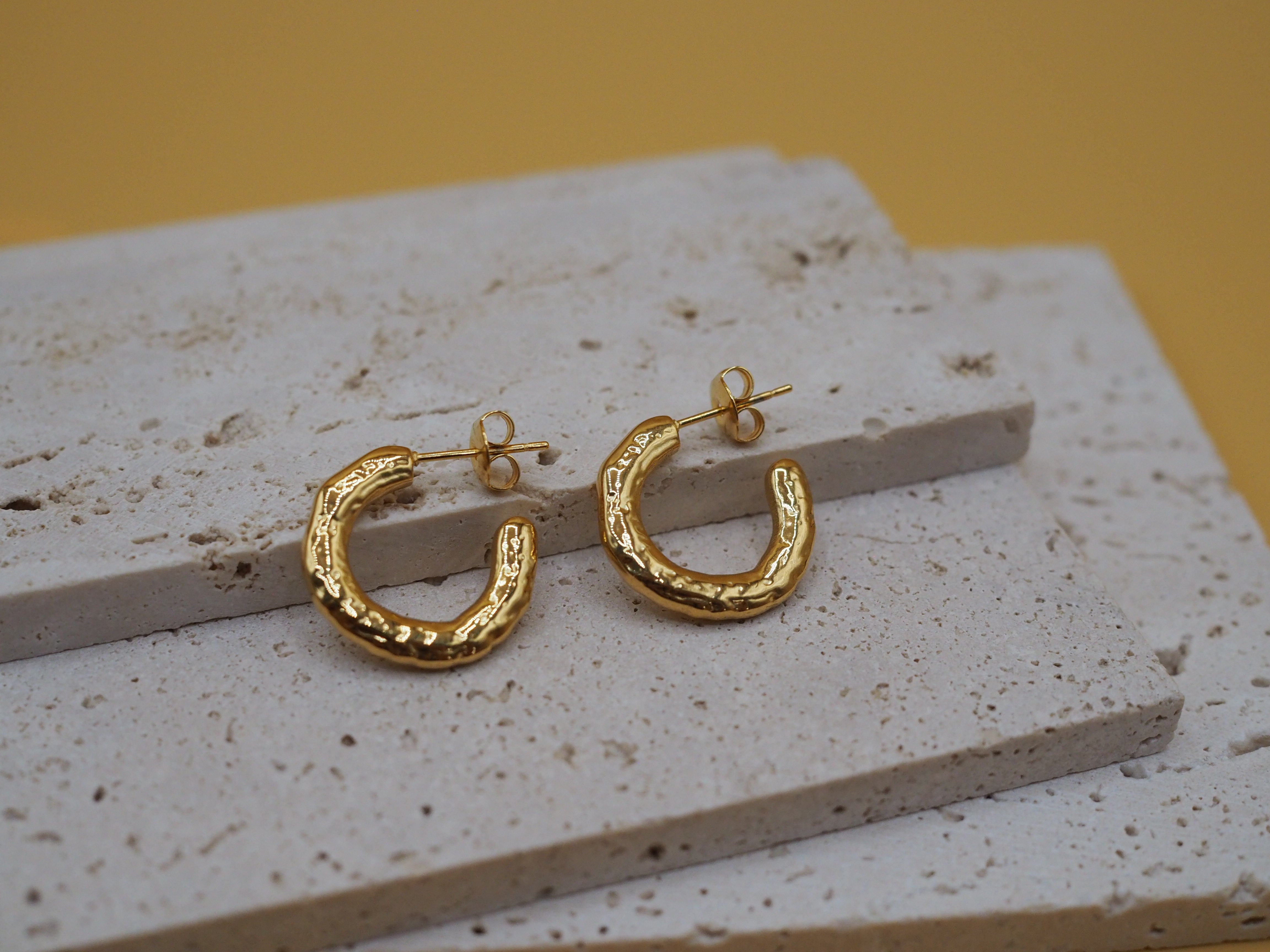 CECIL – 18K vergulde mini hoops | Organische structuur | Tijdloos met karakter
