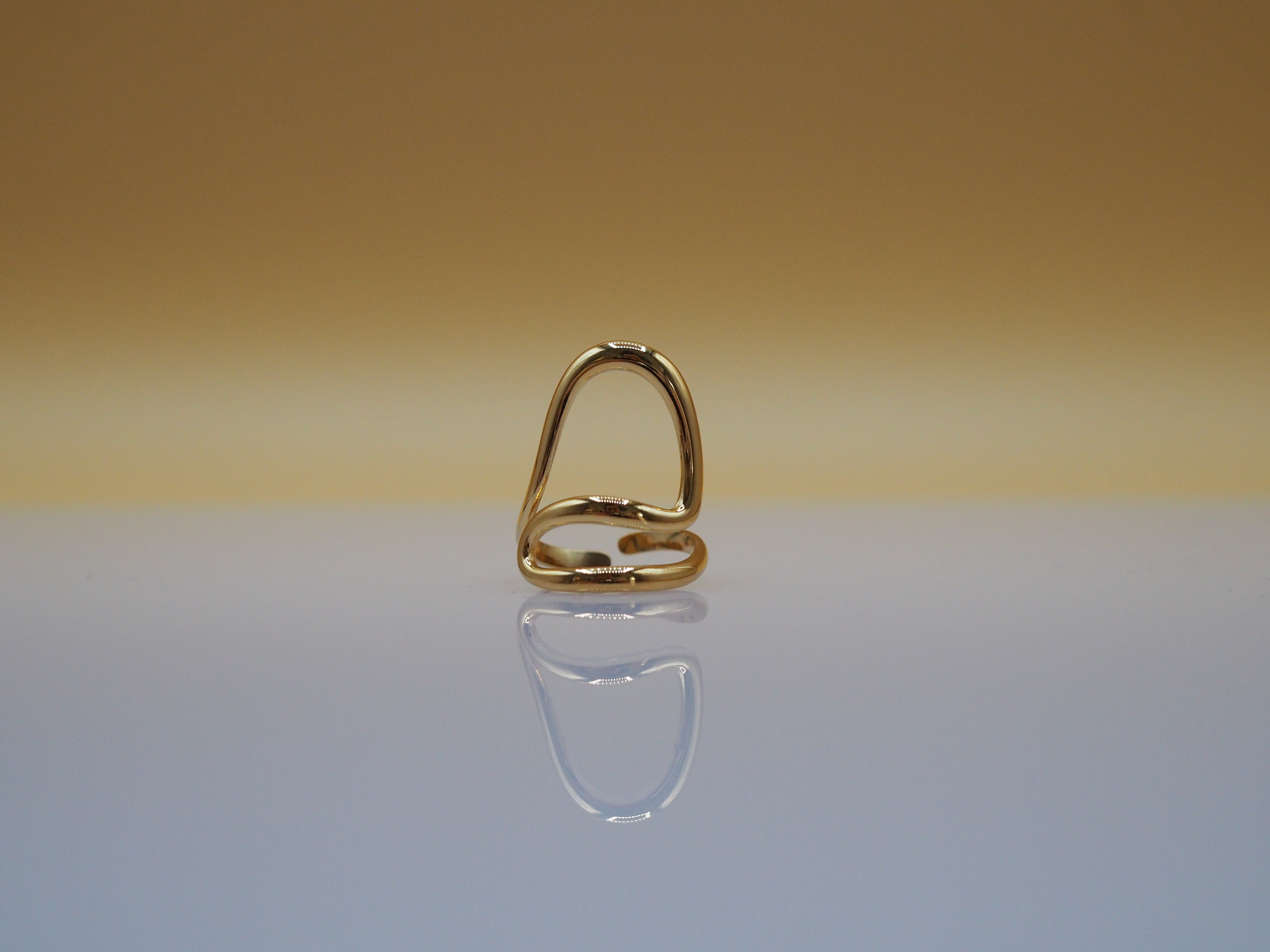 SAAR – 18K vergulde statement ring | Dubbel sculpturaal design met warme gouden glans